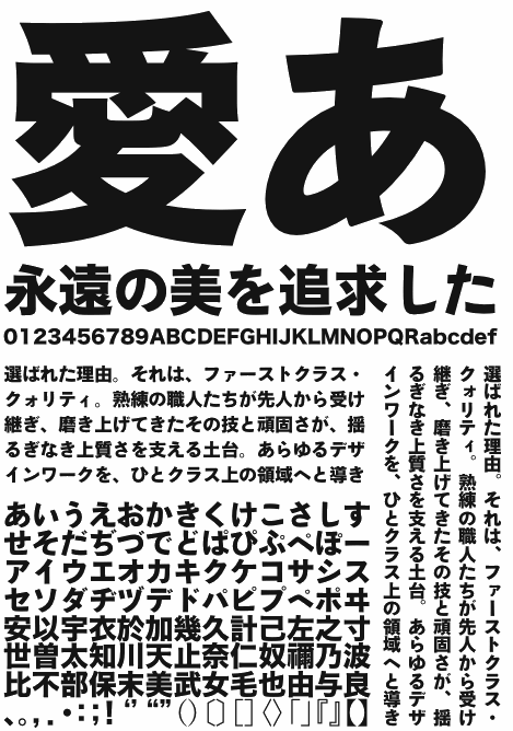 昭和初期の金属活字をベースに作られた仮名書体にヒラギノ角ゴの漢字と欧文を組み合わせたゴシック体。現代のフォントでは感じることのできない、クラシックな独特の味わいを持ち、書籍や雑誌をはじめとする幅広い用途に対応。