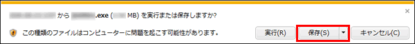 Internet Explorerをご利用で、画面の下側に「実行または保存しますか?」と表示された場合、【保存】をクリックしてください。