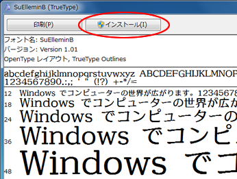 フォントファイル(ttfファイル)をダブルクリックして開きます。