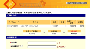 クレジットカードをご利用の場合、手続きは完了です。ユーザーIDとご登録のE-mailアドレスが表示されます。 コンビニ前払い/ネットバンキング前払いをご利用の場合、以降のお支払手順が表示されます。(同時にご登録のE-mailアドレスにご注文内容などの確認メールが届きます) |