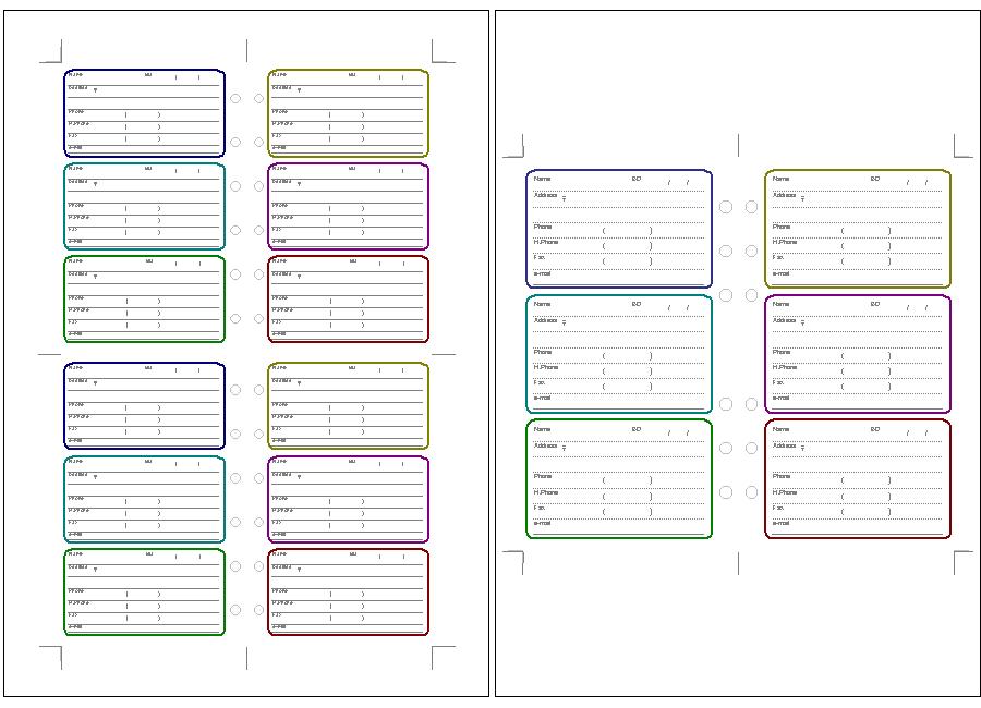 ビジネスからパーソナル向けに利用できるアドレス帳です。データを入力後に印刷するか、印刷後にデータを入力し、切り取り、穴をあけてご利用ください。