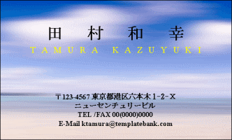 空・海・砂浜の夏の風景を疾走する車から撮影したように、すじ状に左右に流れたデザイン。夏のご挨拶、ショップカード、海にかかわるお仕事の方の名刺に。 氏名、住所、TEL、FAX、Eメールアドレスの項目が設定されています。項目の追加やロゴなど画像の追加など、編集も可能です。