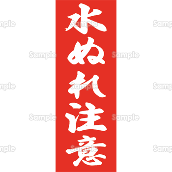 「水ぬれ注意」の注意喚起に使用する文字イラストです。千社札シールサイズです。