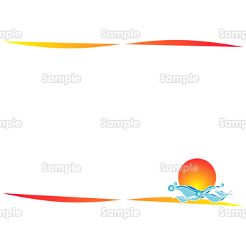 金と赤のグラデーションの上下のライン、右下には波間の日の出がデザインされた横長のフレーム素材です。年賀状の背景デザインにおすすめです。
