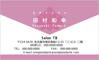 赤紫をベースに、ロータスフラワーをデザインしたアジアンテイストの名刺テンプレートです。マッサージ・ヒーリングサロンやアジアン雑貨店・レストランなどの名刺にいかがでしょう。部署・肩書き、氏名、英語氏名、社名、住所、MOBILE(携帯電話)、TEL、FAX、E-mailの項目が設定されています。Webアプリで内容の入力、項目の追加・削除、ロゴマークの挿入など様々な編集ができます。
