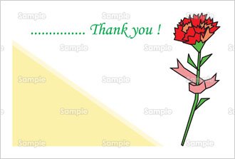 左側に一輪の赤いカーネーション、背景は白がベースですが、右側が薄い黄色になっているポップなデザインです。「・・・・・・・・・・・・・・・Thank you!」のタイトルメッセージが印象的です。はがきサイズと名刺サイズのミニカードが作れます。