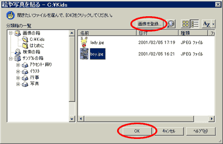 ![]() ![]() ダウンロードした画像を使う場合は、[画像を登録]から「一覧に登録」を選んでください。 先ほどのダイアログボックスで、選んだ画像が表示されたことを確認して[OK]ボタンをクリックします。