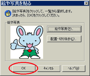 メニューバーの「絵や枠」−「絵や写真を貼る」を選びます。